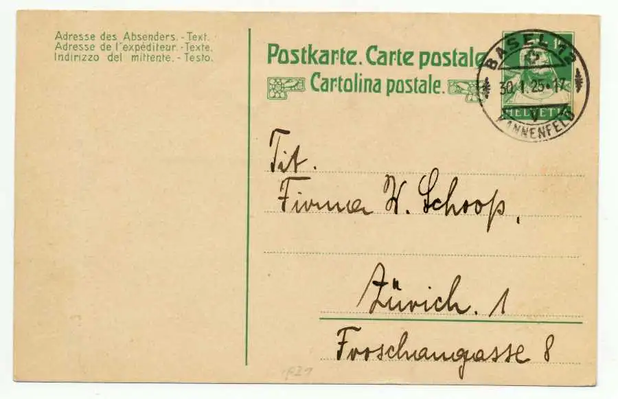 SCHWEIZ POSTKARTE BRIEF 6DF7E2