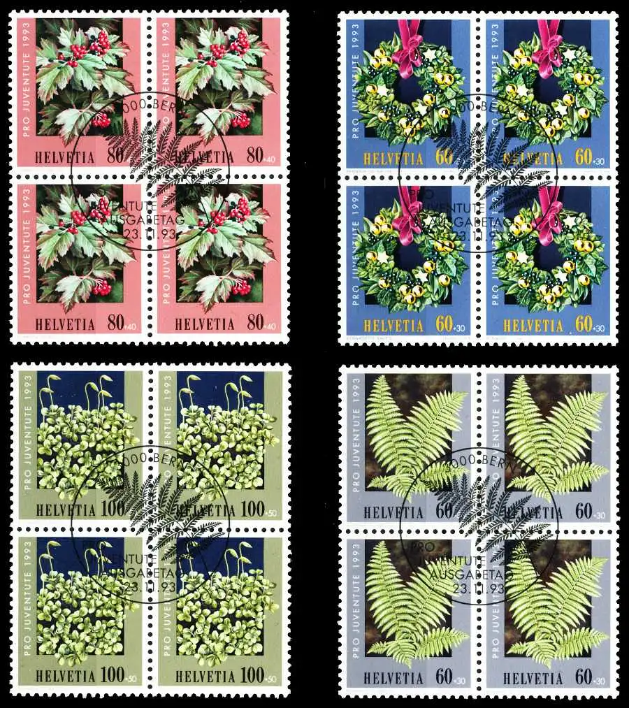 Ausgabe Pro Juventute 1993, in Viererblöcken mit ESST