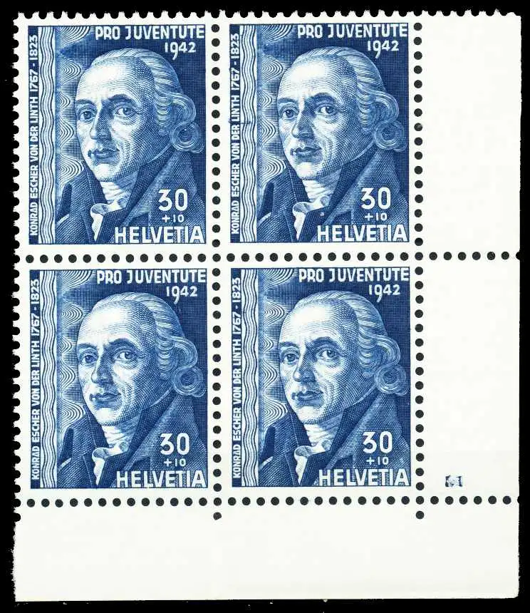 SCHWEIZ PRO JUVENTUTE Nr 415 postfrisch VIERERBLOCK ECK 4FAD7A