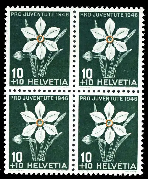 10 + 10 C Wert aus der Ausgabe Pro Juventute von 1946, eine Marke kleine Falzspur