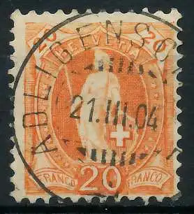 20 C Wert aus der Ausgabe stehende Helvetia von 1882 mit Kontrollzeichen 1 in Zähnung K 11 1/2 / 11