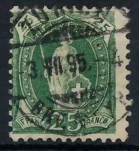 25 C Wert aus der Ausgabe stehende Helvetia von 1882 mit Kontrollzeichen 1 in Zähnung K 11 1/2 / 11