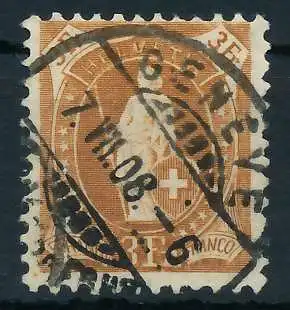 300 C / 3 Fr Wert aus der Ausgabe stehende Helvatia von 1905-1908 mit Wasserzeichen Kreuz in der Zähnung D (K11 1/2 : 12)