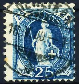 25 C Wert aus der Ausgabe stehende Helvatia von 1899 mit Kontrollzeichen 1Y in der Zähnung K 11 1/2 / 11