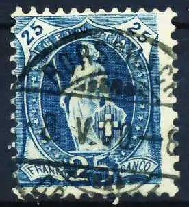 25 C Wert aus der Ausgabe stehende Helvatia von 1899 mit Kontrollzeichen 1Y in der Zähnung K 11 1/2 / 11