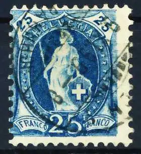 25 C Wert aus der Ausgabe stehende Helvatia von 1899 mit Kontrollzeichen 1Y in der Zähnung K 11 1/2 / 11