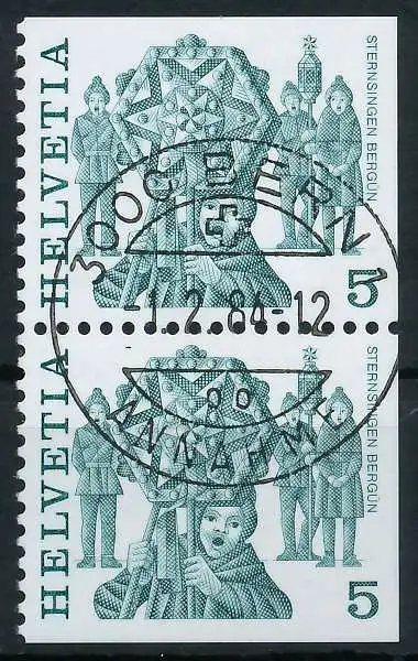5 + 5 Zusammendruck aus Heftchenblatt Volksbräuche oben, unten und rechts geschnitten (MichelNr.: 1100xw)