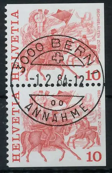 10 + 10 Zusammendruck aus Heftchenblatt Volksbräuche oben, unten und rechts geschnitten (MichelNr.: 1101xw)