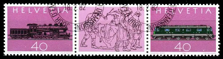 Kleinbogen-Ausgabe 100 Jahre Gotthard-Bahn, Dreierstreifen (MichelNr.: 1214, 1215)