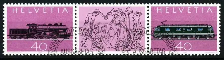 Kleinbogen-Ausgabe 100 Jahre Gotthard-Bahn, Dreierstreifen (MichelNr.: 1214, 1215)