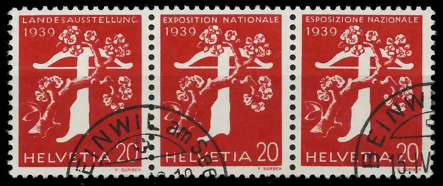 SCHWEIZ ZUSAMMENDRUCK Nr W20 gestempelt 3ER STR 728F66