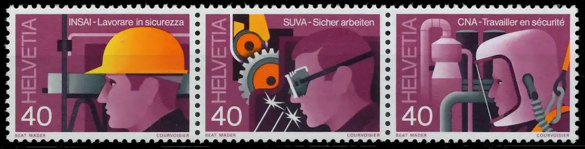 40 + 40 C + 40 C Wert aus der Ausgabe Sichere Arbeit (MichelNr.: 128 1134, 1135, 1136)