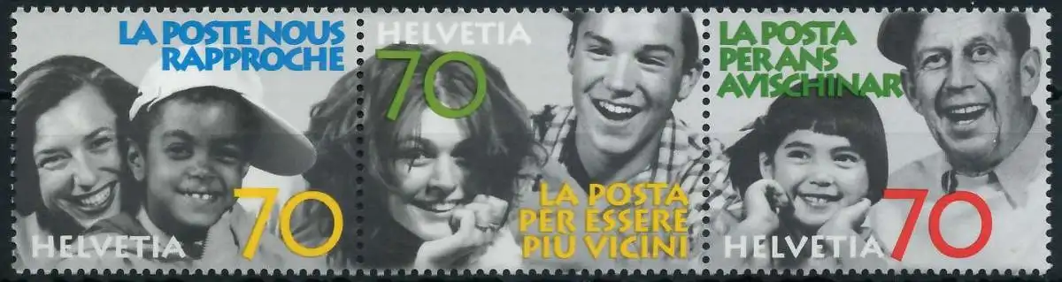 70 C + 70 C + 70 C Wert aus der Ausgabe Die Post damit wir uns näher kommen (MichelNr.: 32 1626, 1627, 1628)