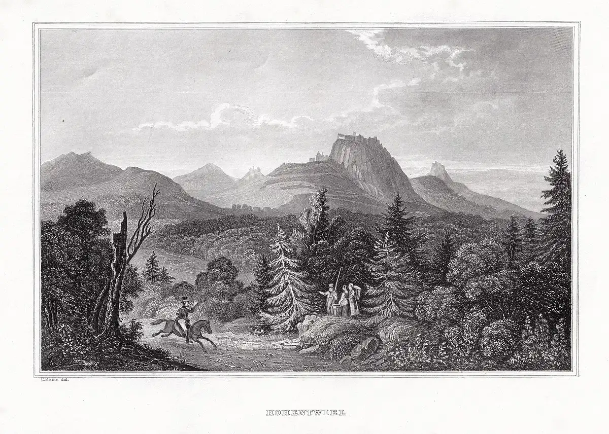 SINGEN Hohentwiel . Echter Stahlstich um 1840