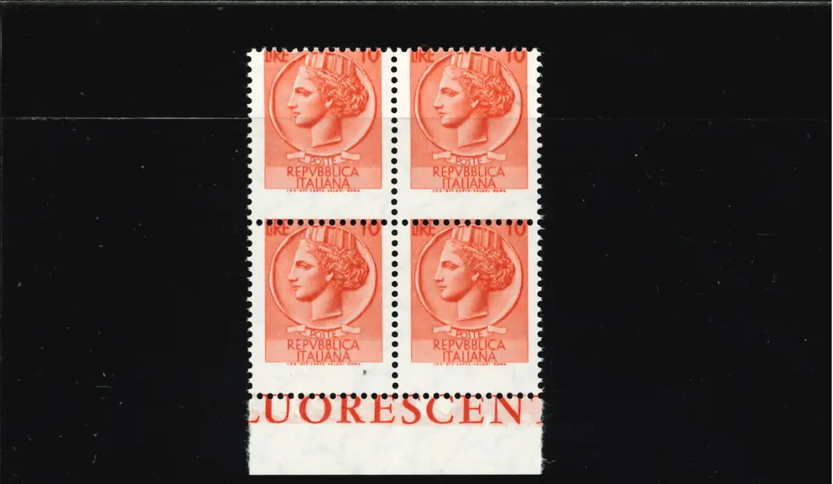 MNH - Vollgummi - SIRACUSANA 10 LVINYL QUARTINA BDF UNTEN DENT FS IN VERTIKALER RICHTUNG - Kat. euro 240 Cod. ITAV_0053