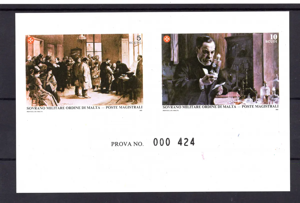 Ohne Gummi - SMOM - Tollwutimpfung Nr. 241/242 Serie zwei Werte, Druckprobebogen weißes Papier ohne Wasserzeichen Cod.1893/WEB