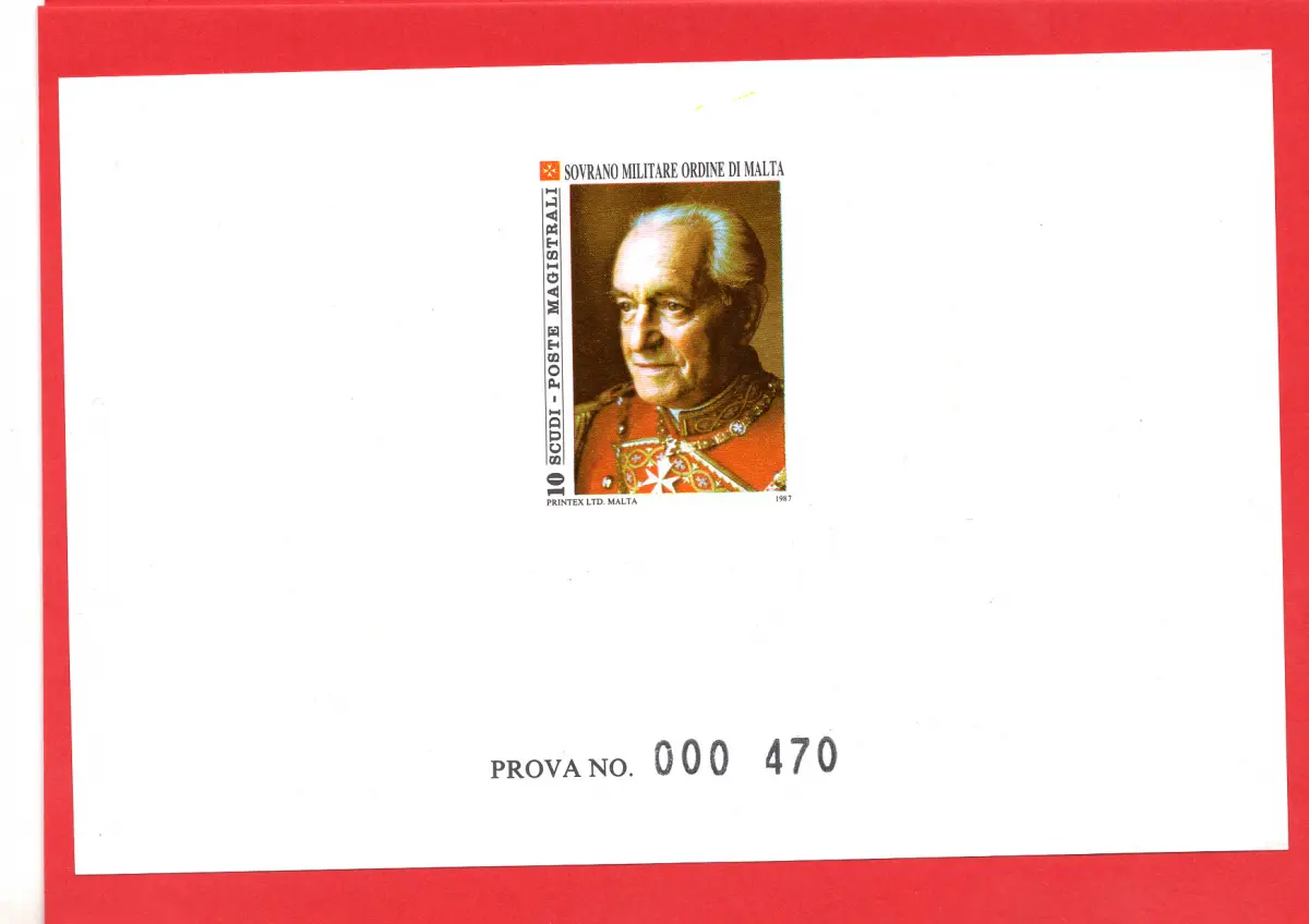 Ohne Gummi - SMOM - Porträt des Großmeisters Nr. 267 Druckprobebogen auf weißem Papier ohne Wasserzeichen Cod.1871/WEB