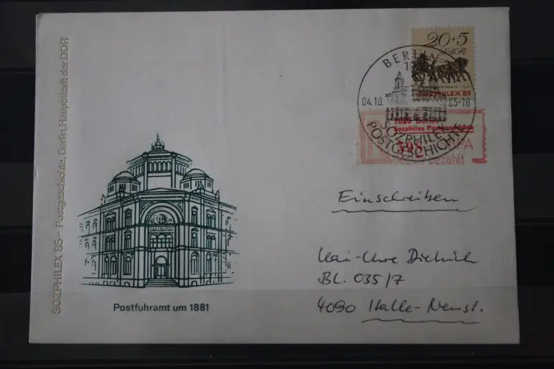 SOZPHILEX 85 Berlin, 1985, SbPÄ-Einschreibe-Gebührenzettel