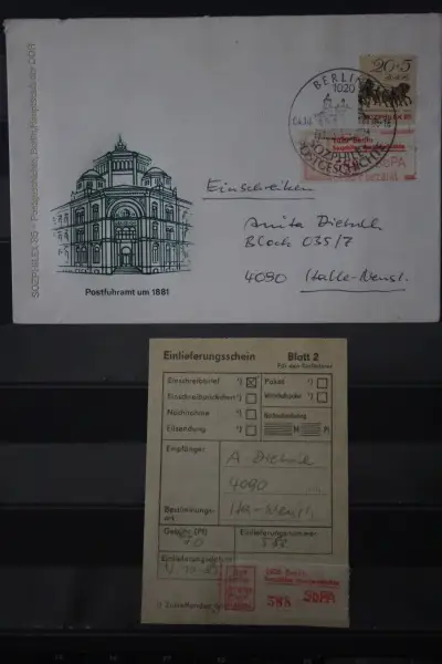 SOZPHILEX 85 Berlin, 1985, SbPÄ-Einschreibe-Gebührenzettel