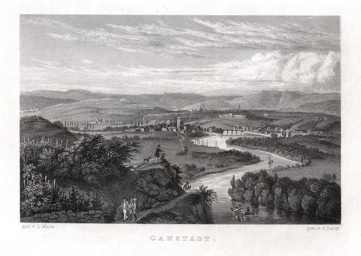 STUTTGART: Bad Cannstadt. Gesamtansicht. Originaler Stahlstich um 1850