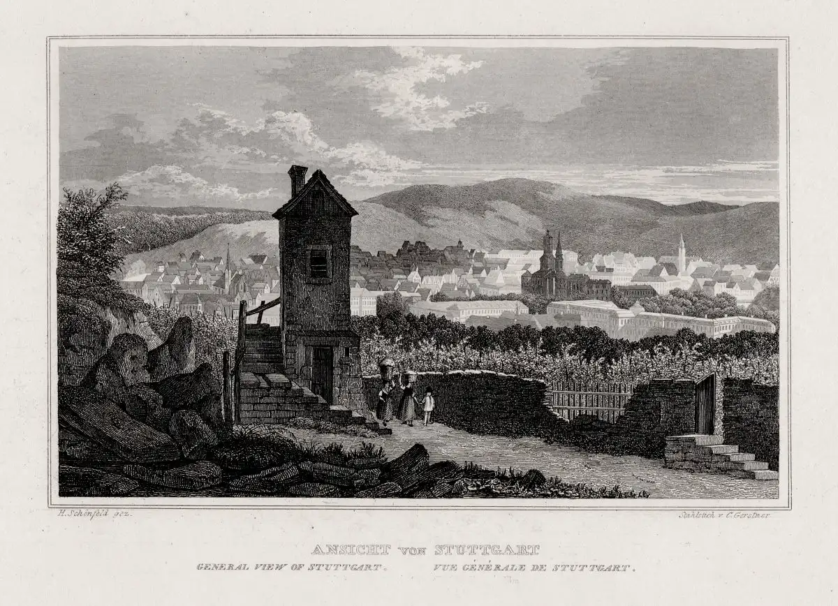 Stuttgart. Gesamtansicht. Originaler Stahlstich, Reiss um 1850