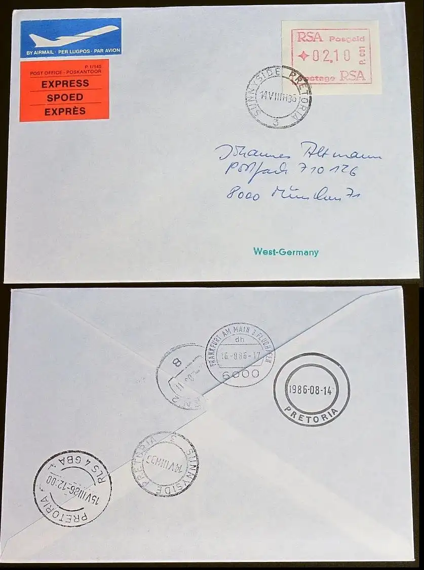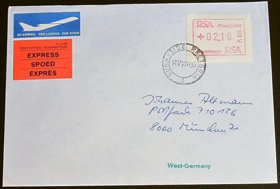 SÜDAFRIKA 1986 Mi-Nr. ATM 1.2 Automatenmarke Express FDC