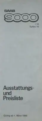 Saab 9000 i 16 / Turbo 16 Preisliste 3.1986