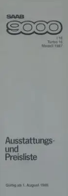 Saab 9000 i 16 / Turbo 16 Preisliste 8.1986