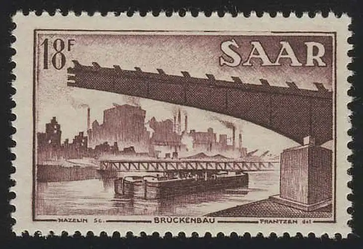 Saarland 330 Freimarke 18 Fr, postfrisch **