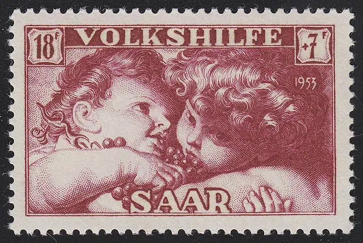 Saarland 345 Volkshilfe Gemälde 18 Fr 1953, postfrisch **