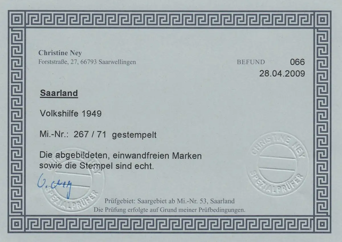 Saarland: MiNr. 267-271, gestempelt