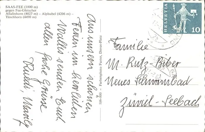 Saas-Fee Saas Fee postalisch gelaufen 1965 Erhaltung siehe scans Alte Ansichtskarte Postkarte BertBack