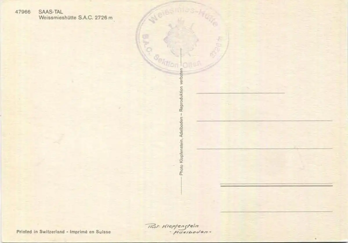 Saas-Tal - Weissmieshütte - AK Grossformat - Edition Klopfenstein Adelboden (G62244)