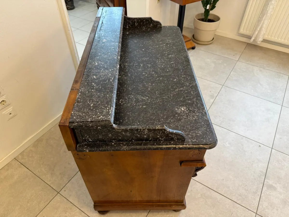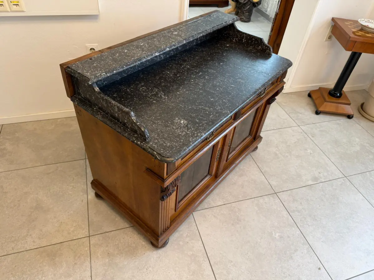 ein sogenannter Waschtisch mit Granitplatte, wie er zur damaligen Zeit in feineren Haushalten verwendet wurde.