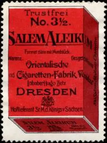 Orientalische Cigaretten - Fabrik Yenitze Inhaber : Hugo Zietz Dresden