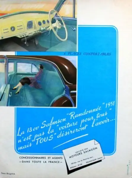 Salmson Modellprogramm 1951 Automobilprospekt (9446)