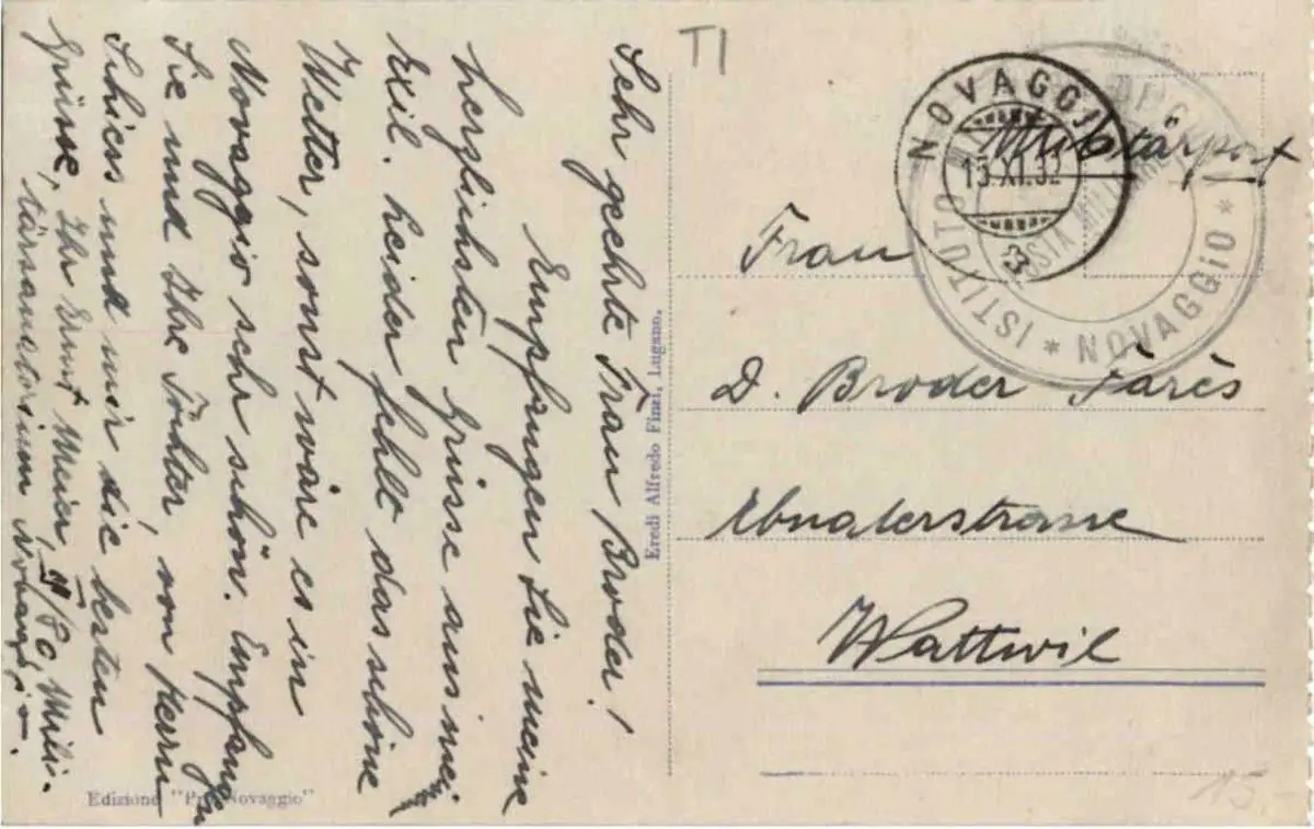 Danke. Alles Bestens. Können Sie mir allenfalls mitteilen, aus welchem Jahr die Postkarte stammt? Besten Dank.