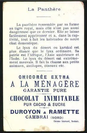 Sammelbild Duroyon-Ramette, Chicorée a la Ménagére, Panter und Lux