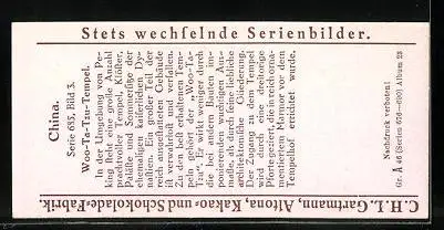 Sammelbild Gartmann Schokolade, China, Woo-Ta-Tzu-Tempel