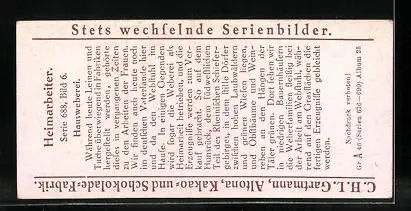 Sammelbild Gartmann Schokolade, Heimarbeiter, Hausweberei