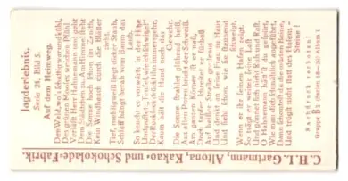 Sammelbild Gartmann Schokolade, Jäger auf dem Heimweg