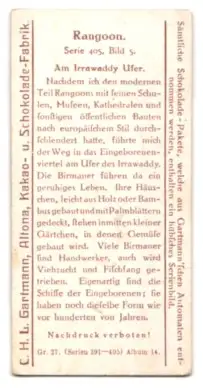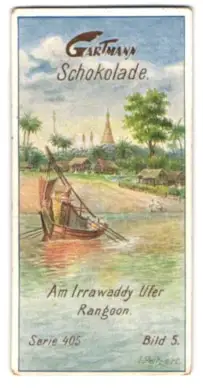 Sammelbild Gartmann Schokolade, Rangoon, Irrawaddy Ufer