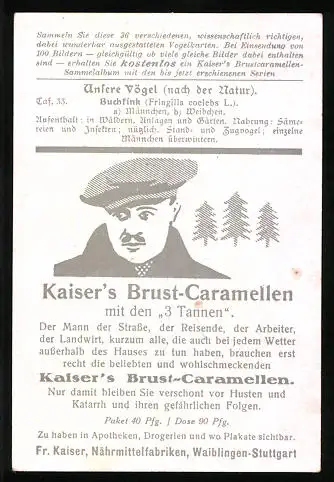 Sammelbild Kaiser's Brust-Caramellen, Fr. Kaiser GmbH, Serie: Unsere Vögel, Nr. 33, Buchfink