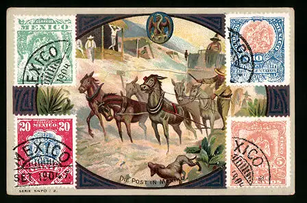 Sammelbild Krefelder Margarine-Werke Jan C. Uhlenbroek, Die Post in Mexiko