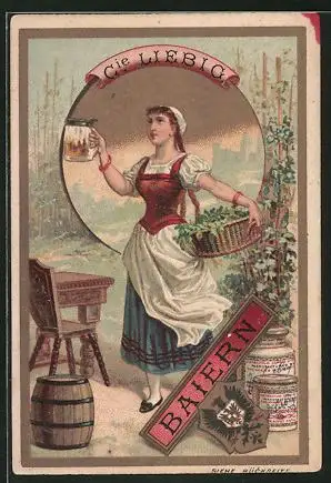 Sammelbild Liebig, Baiern, Frau in Tracht mit Korb unterm Arm