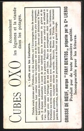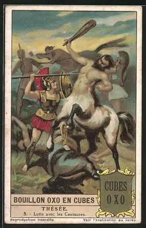 Sammelbild Liebig, Bouillon oxo en Cubes, Thésée, Lutte avec les Centaures