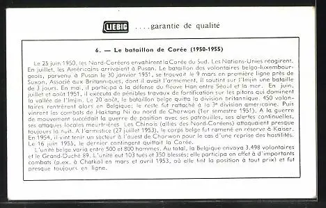 Sammelbild Liebig, Corps Expeditionnaires Belges, Le bataillon de Corée