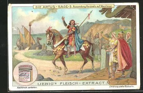 Sammelbild Liebig, Die Artus-Sage, 5. Aussendung Parzivals auf Abenteuer