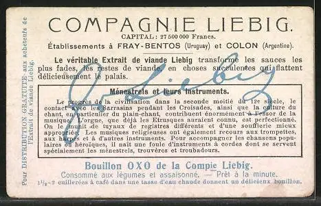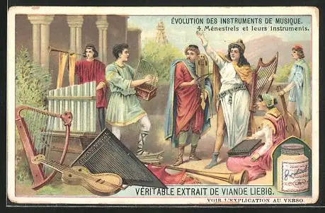 Sammelbild Liebig, Évolution des Insturments de Musique, Ménestrels et leurs instruments