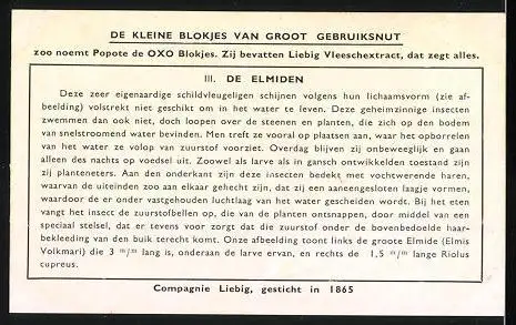 Sammelbild Liebig, In het Water levende Insecten, 3. De Elmiden